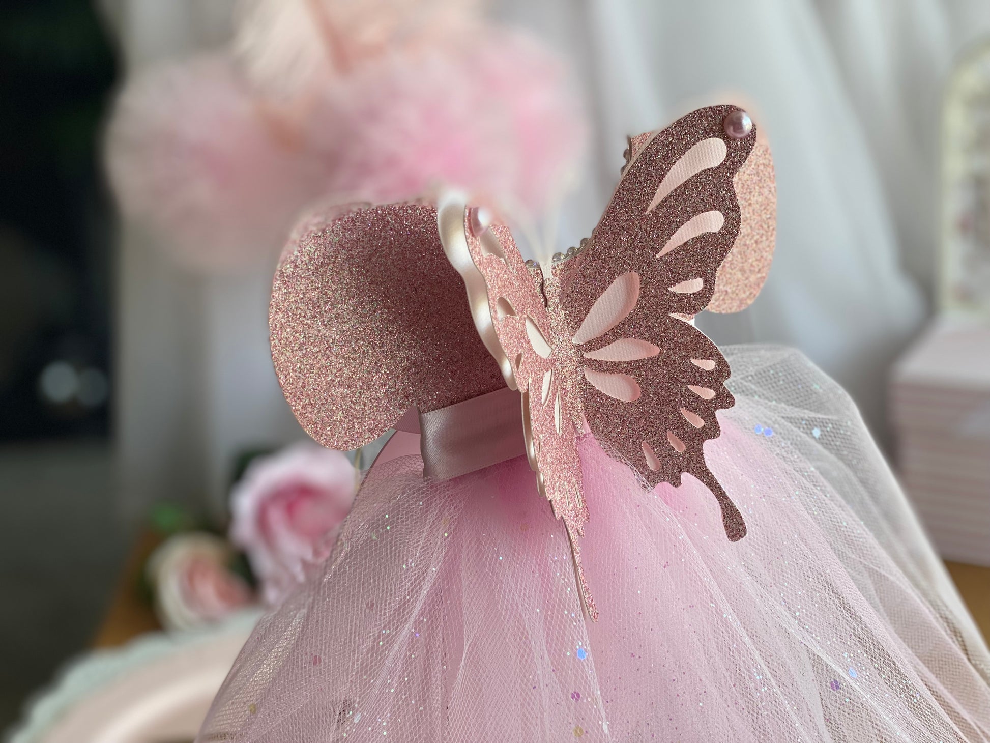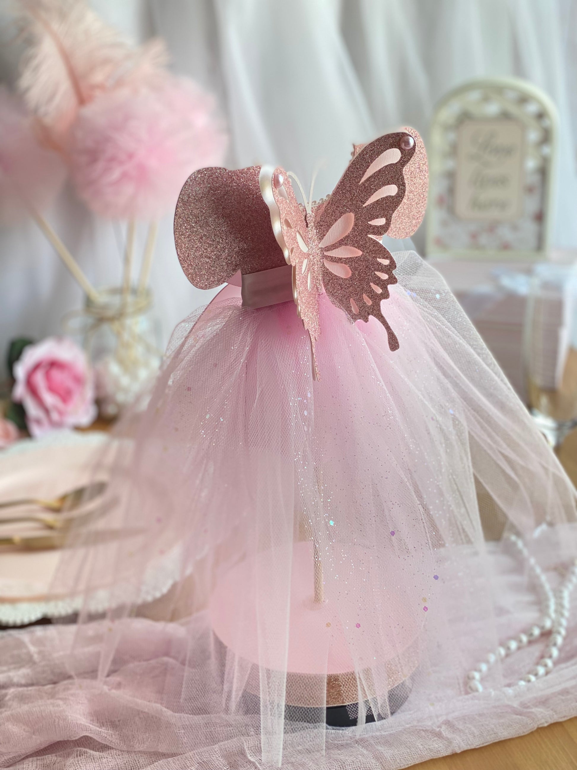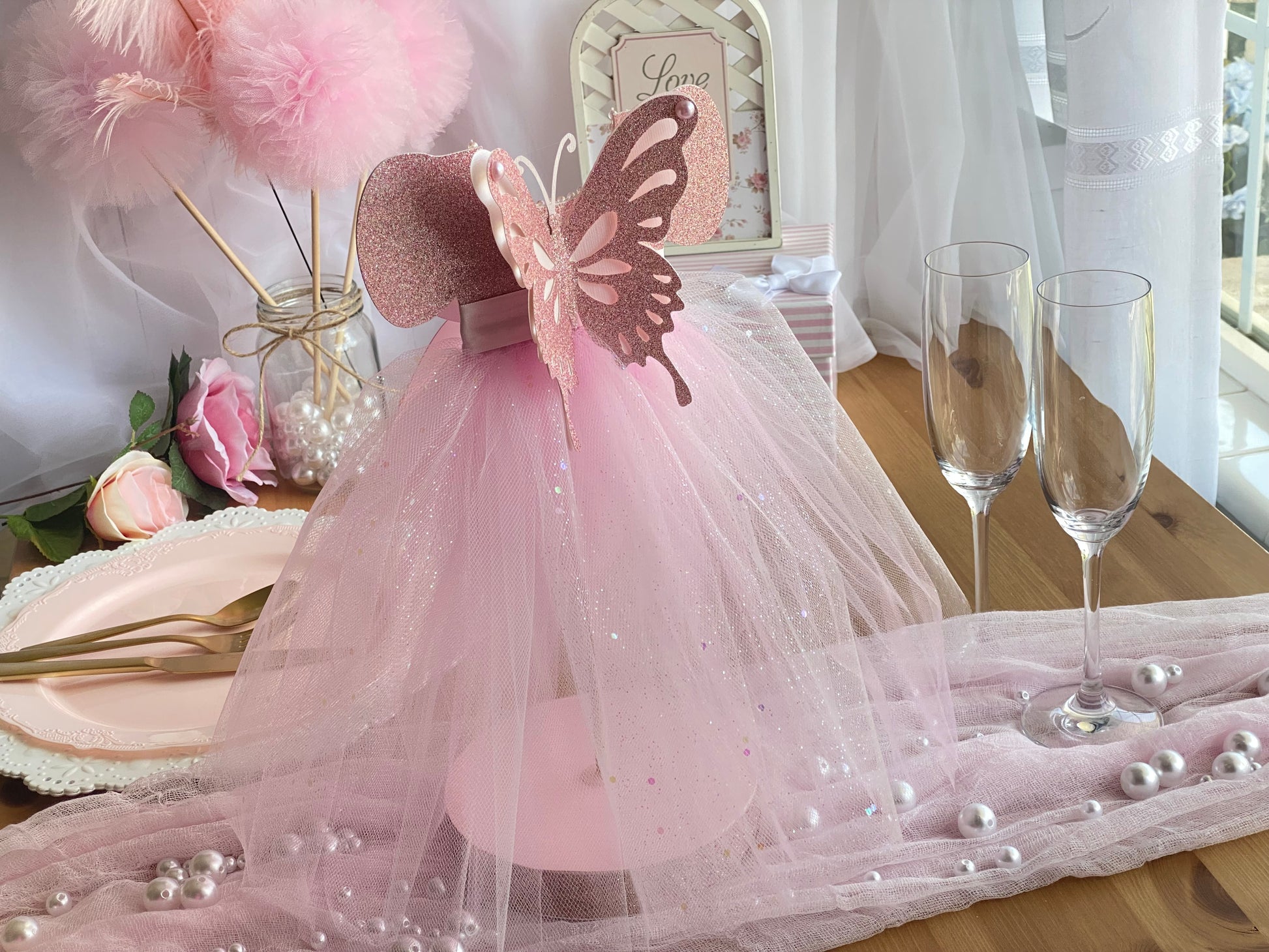 Pink Tutu Sparkles Butterfly Centerpiece 7”x14” tall