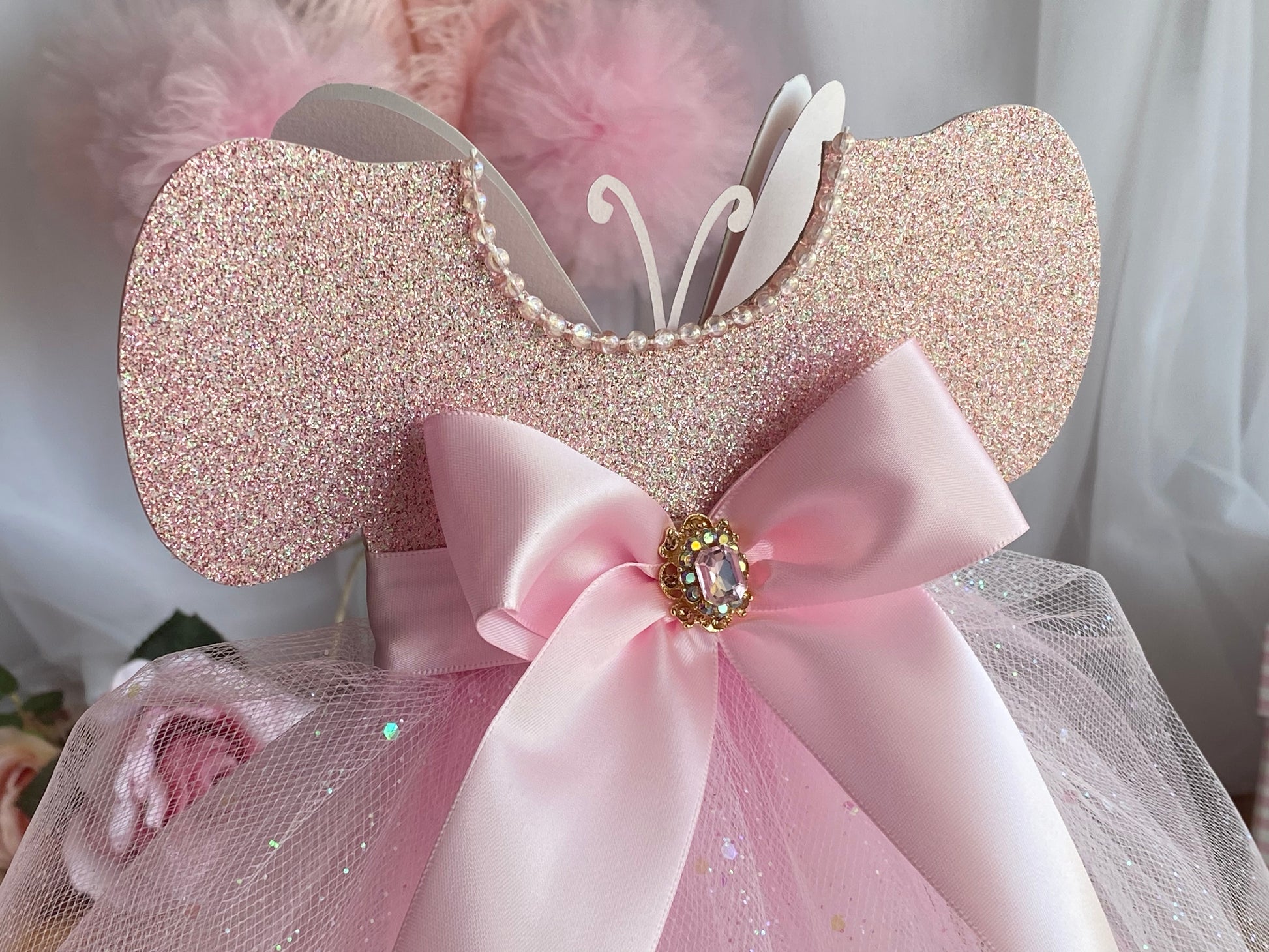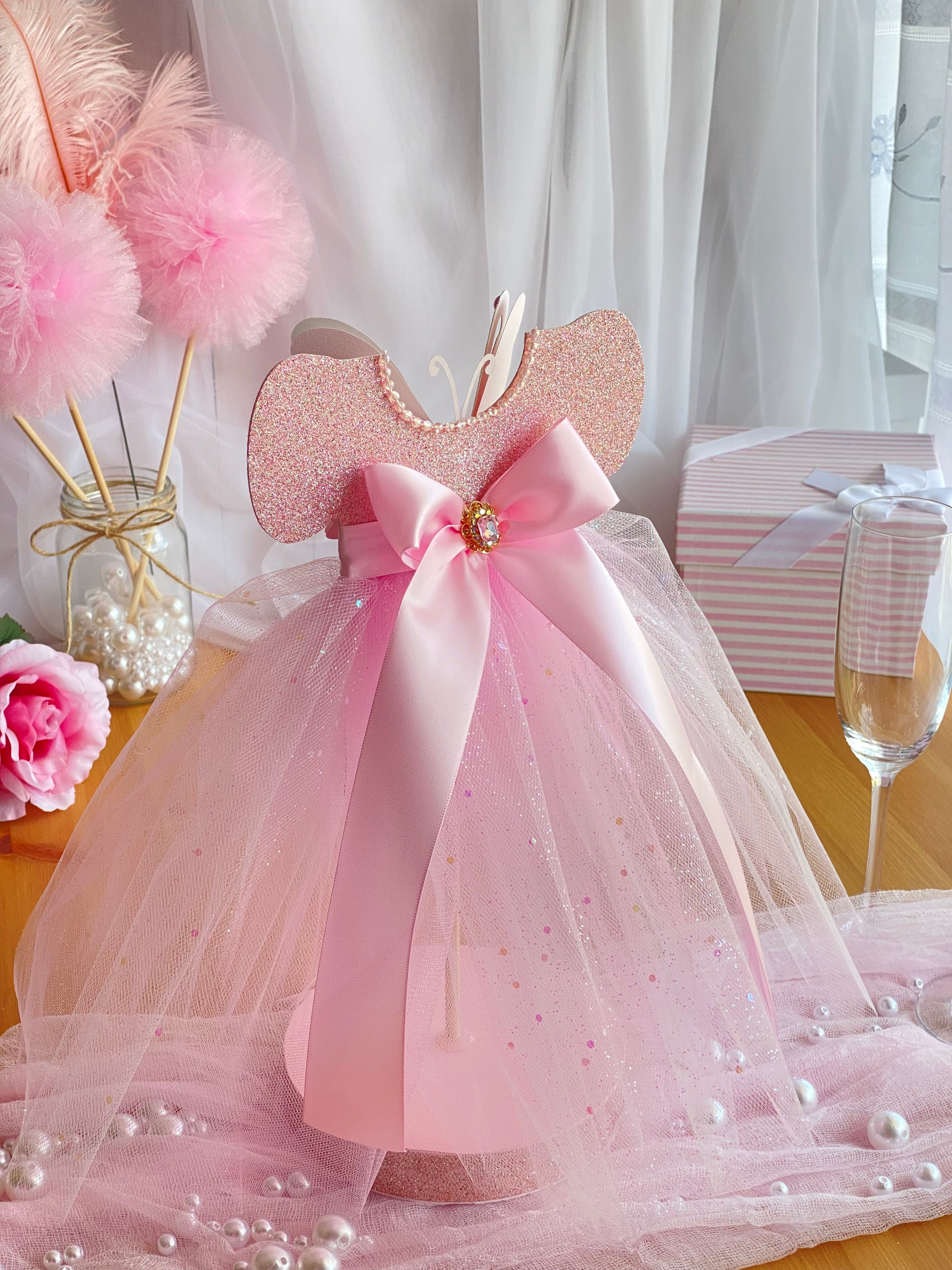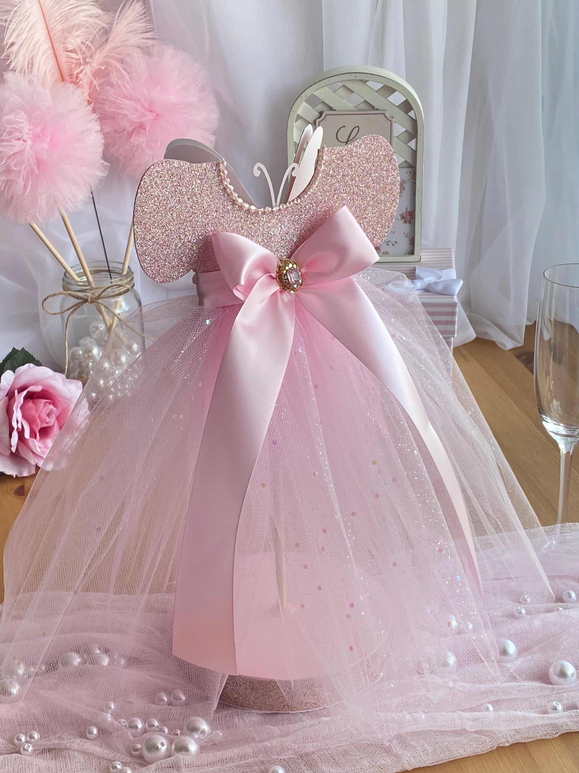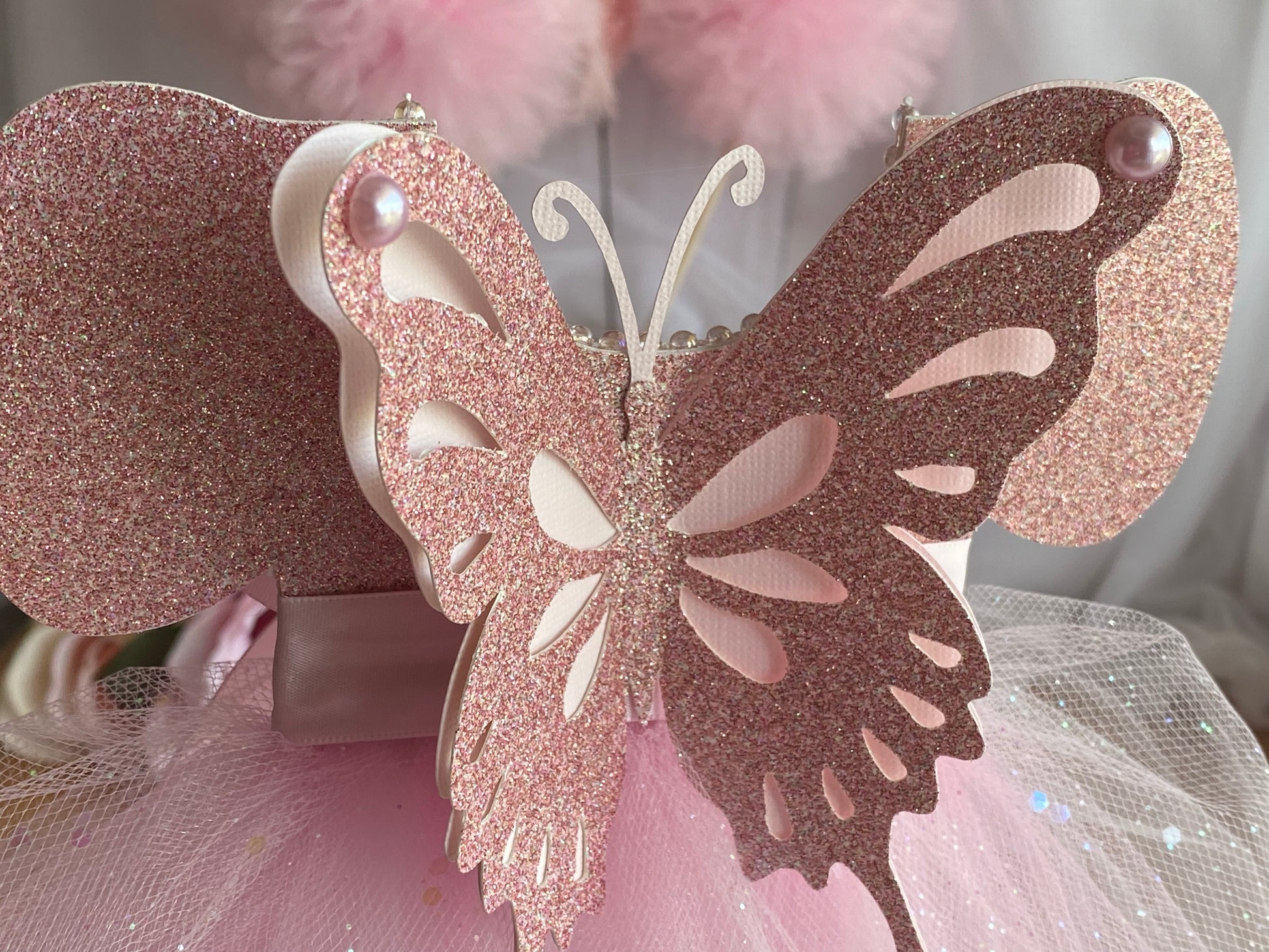 Pink Tutu Sparkles Butterfly Centerpiece 7”x14” tall